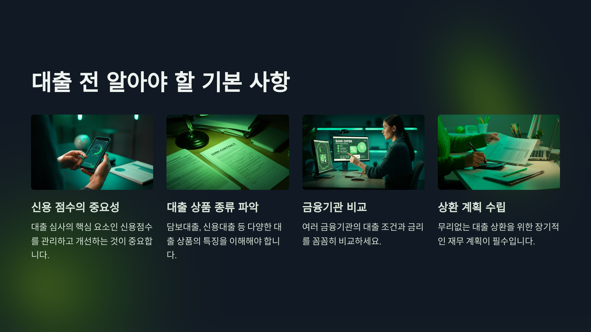 대출 신청 전 반드시 자신의 신용 점수를 확인하고, 필요 시 점수 개선에 힘써야 합니다.