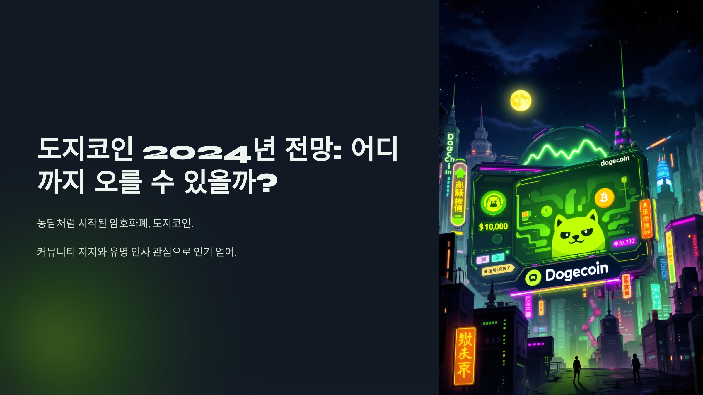 도지코인은 암호화폐 시장에서 밈처럼 시작되었지만, 현재는 대중의 큰 관심을 받고 있는 암호화폐 중 하나입니다. 일론 머스크 등 유명 인사의 발언이 시세에 영향을 미치는 만큼, 2024년 전망도 밝을 수 있습니다.
