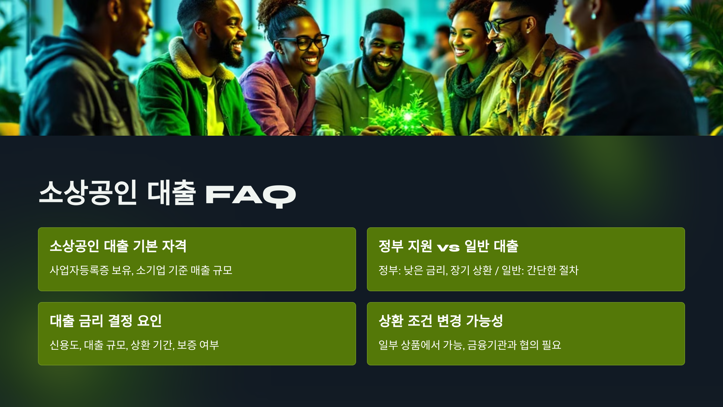 A: 사업자등록증 보유, 매출 규모 제한 등을 충족해야 하며, 대출 상품마다 조건이 다를 수 있습니다.