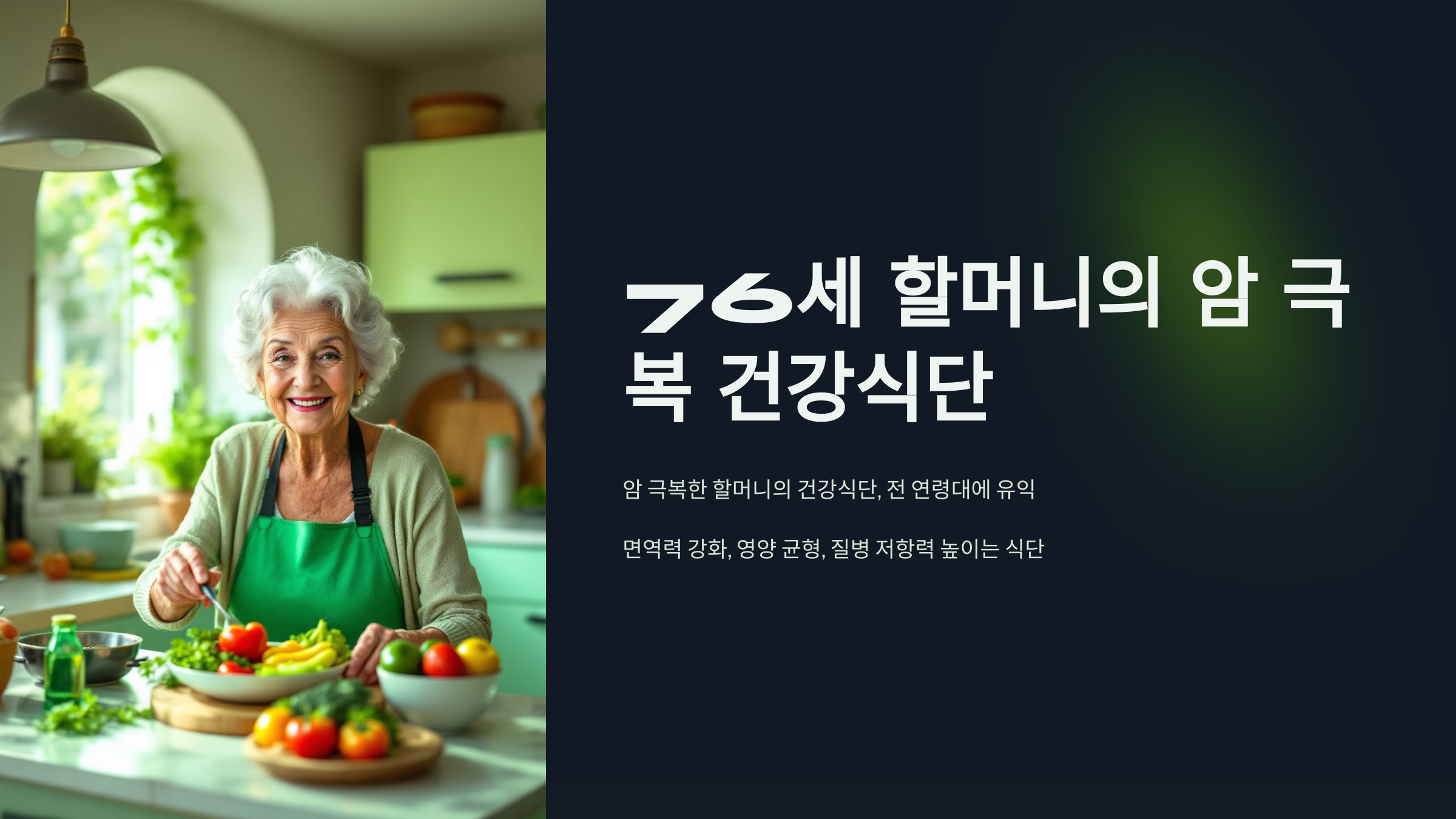 암을 이겨낸 76세 할머니의 건강 식단은 고령층에게도 유익할 뿐만 아니라, 전 연령대의 건강과 면역력을 높이기 위한 모범적인 사례로서 큰 주목을 받고 있습니다. 암 치료 과정에서 면역 체계를 강화하고, 최적의 영양을 공급받아 회복력을 높일 수 있도록 고안된 식단은 건강한 식습관을 통해 몸의 에너지를 관리하고 각종 영양소의 균형을 맞추는 것을 목표로 합니다. 이러한 식단은 몸에 부담을 줄이면서도 필요한 모든 영양을 충분히 제공하며, 이를 통해 암을 포함한 다양한 질병에 대한 저항력을 높이는 것이 특징입니다.