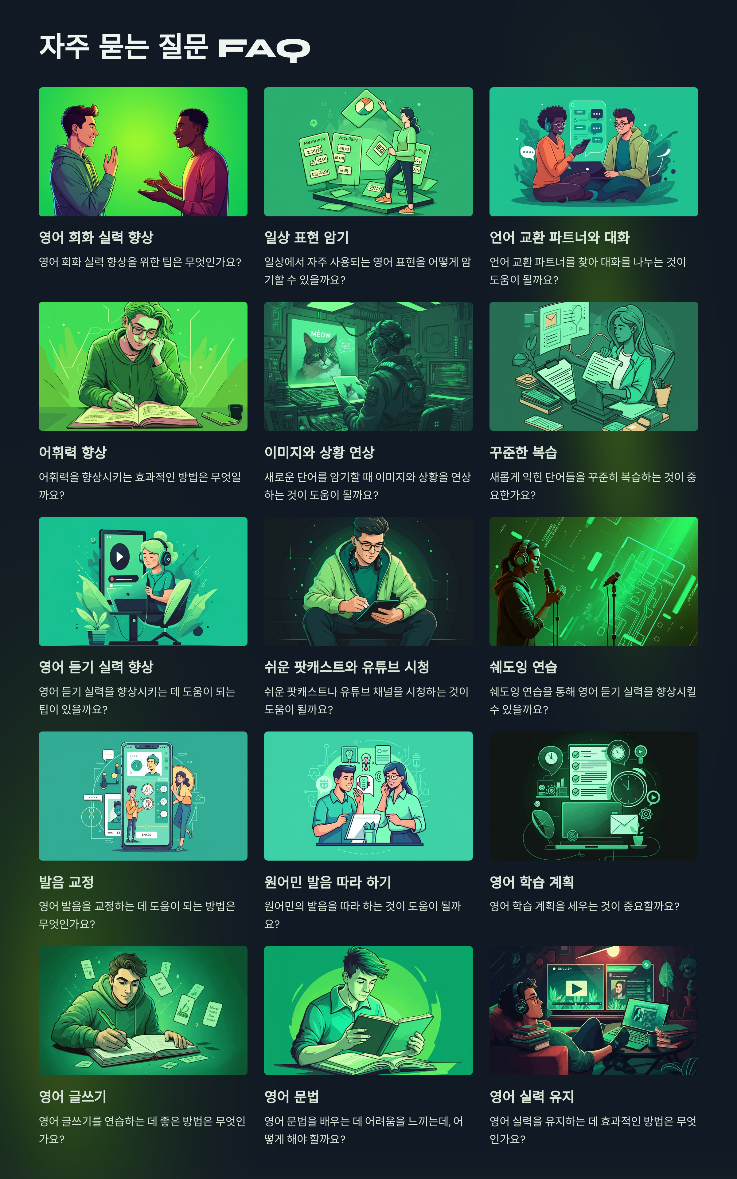 Q1: 영어 회화 실력을 가장 빠르게 높일 수 있는 방법은 무엇인가요?