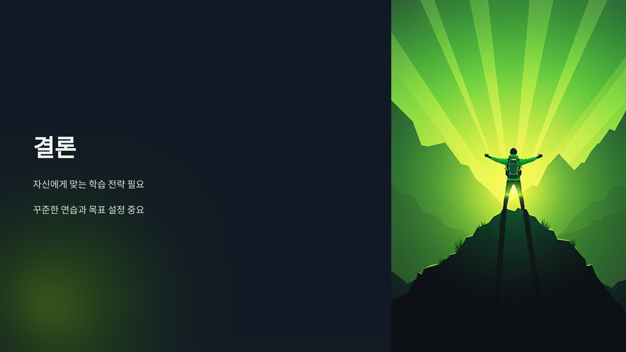 영어 실력 향상을 위해서는 자신의 수준에 맞춘 체계적인 학습이 필요합니다. 꾸준한 연습과 목표 설정으로 자신만의 학습 방법을 찾아 영어 실력을 발전시켜 보세요. 영어는 장기적인 학습이 필요한 분야이므로 끈기를 가지고 목표를 이루길 바랍니다.