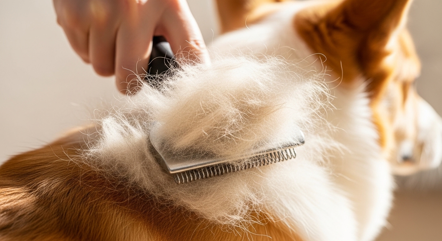 웰시코기는 털이 많이 빠지는 것으로 유명합니다. 이중모 견종으로, 특히 털갈이 시기에는 '털 폭탄'이라고 불릴 정도입니다. **매일 꼼꼼한 빗질**과 **강력한 청소기**는 필수입니다. 죽은 털 관리는 피부병 예방에도 중요합니다.