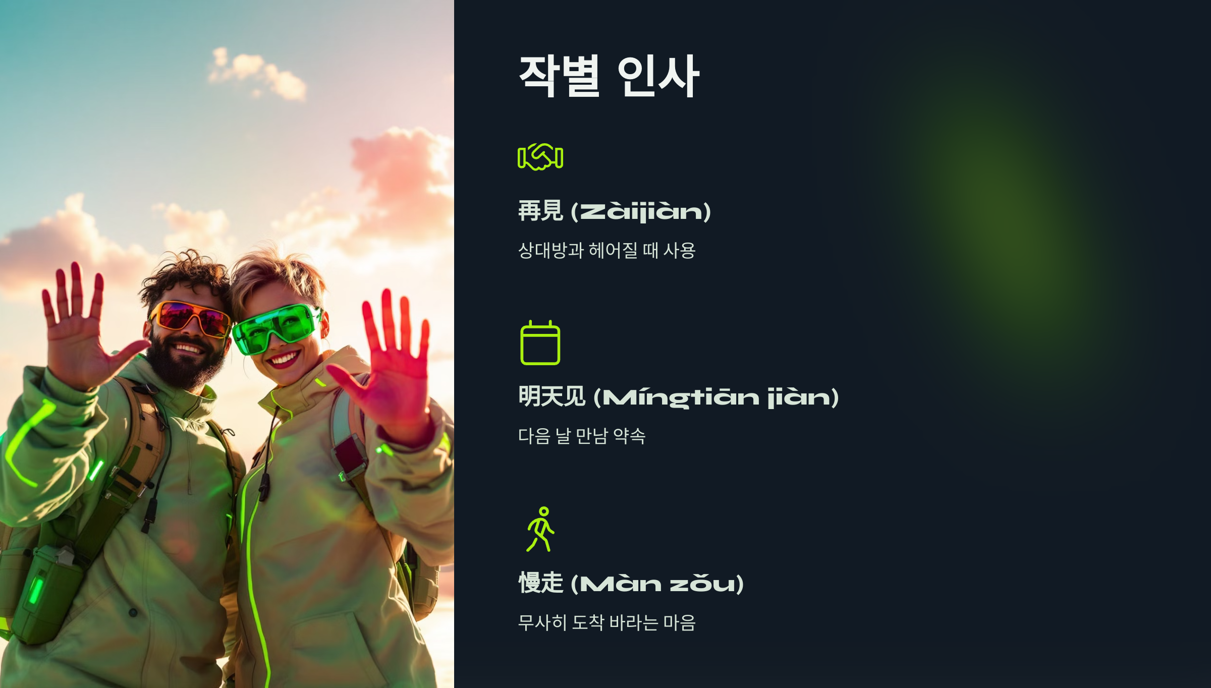 - 중국에서 사용할 수 있는 간단한 작별 인사는 어떤 게 있나요?