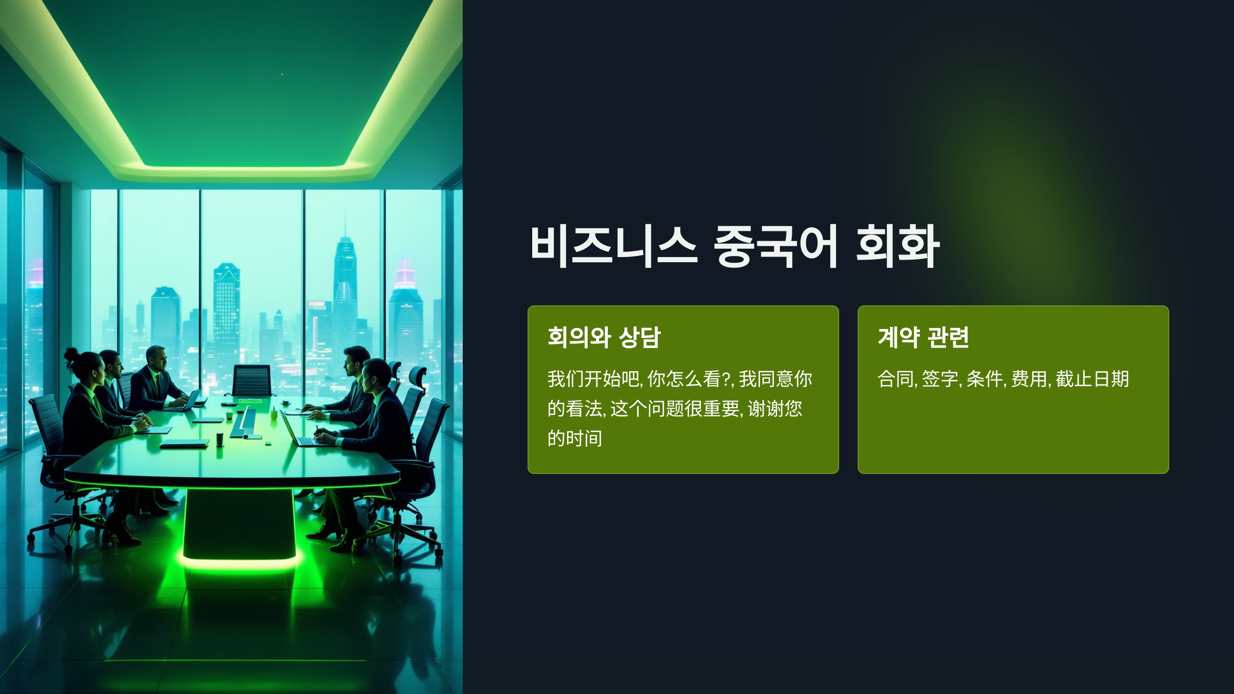 A: 비즈니스 상황에 적합한 용어와 표현을 집중적으로 학습하고, 기본 회의나 계약 용어부터 시작하세요.