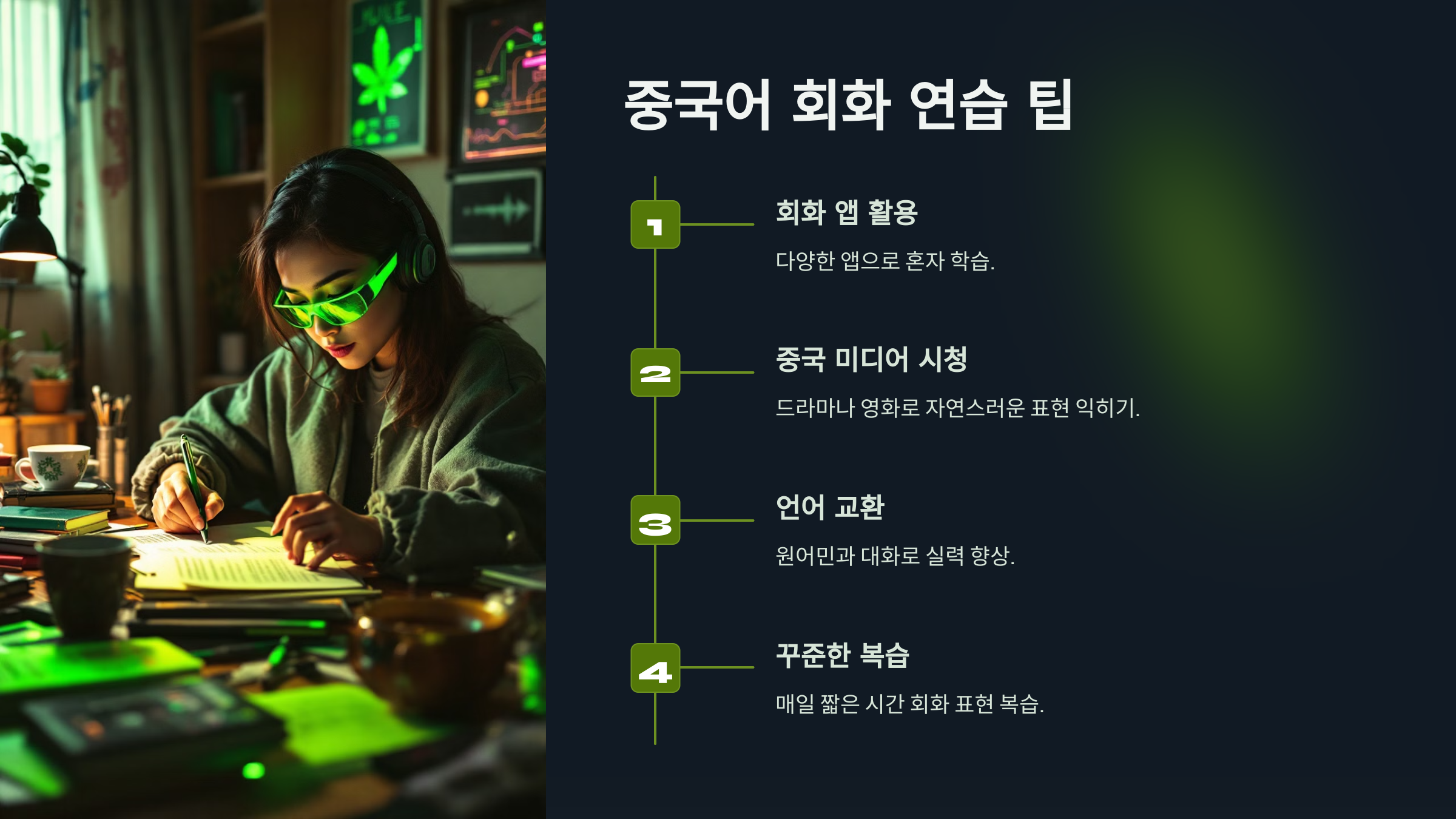 - 중국 드라마나 영화 시청하기: 중국어 발음과 표현을 자연스럽게 익힐 수 있습니다.
