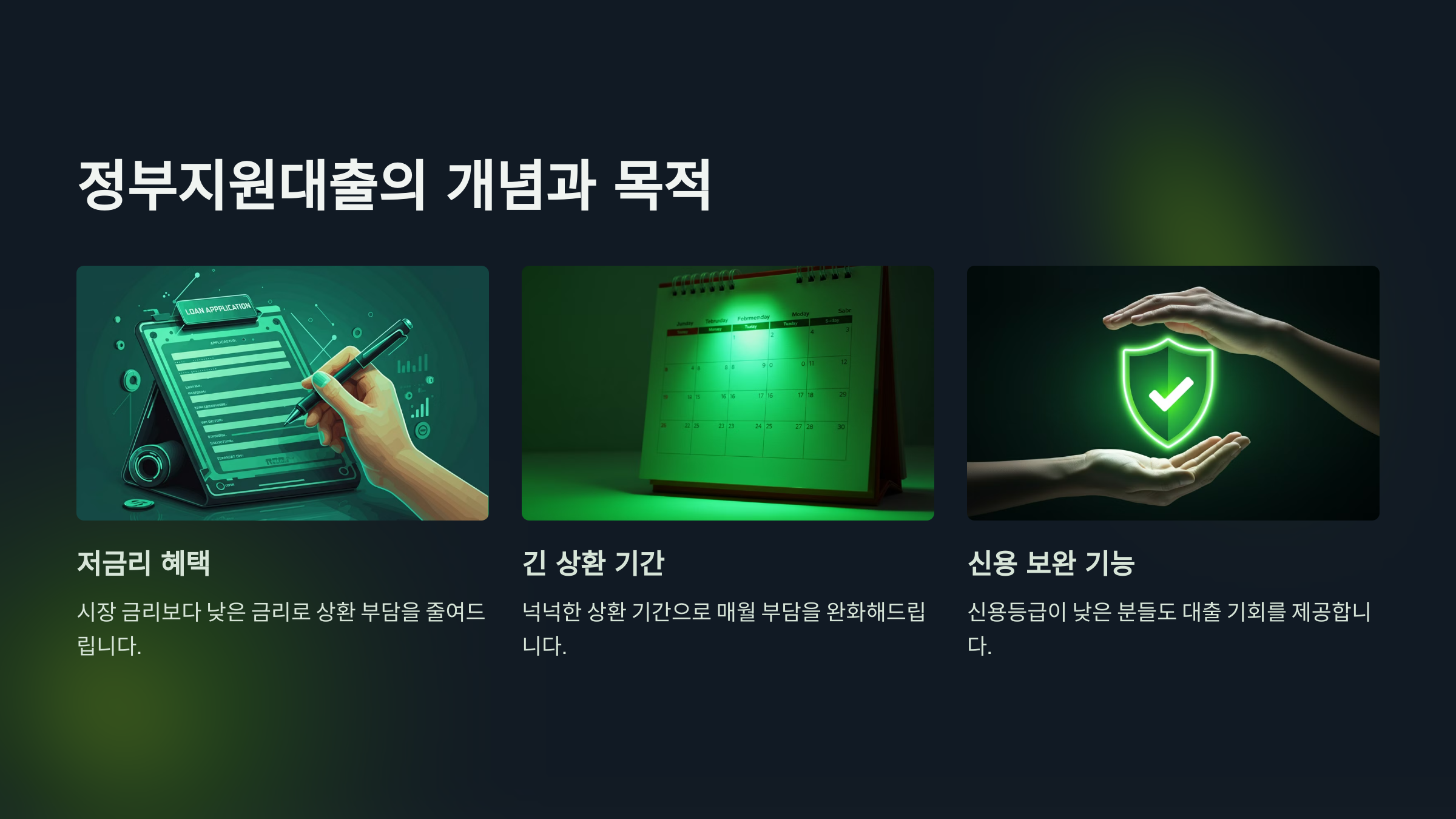 정부지원대출은 국민과 사업체를 위한 금융 프로그램으로 저금리 혜택을 제공합니다.