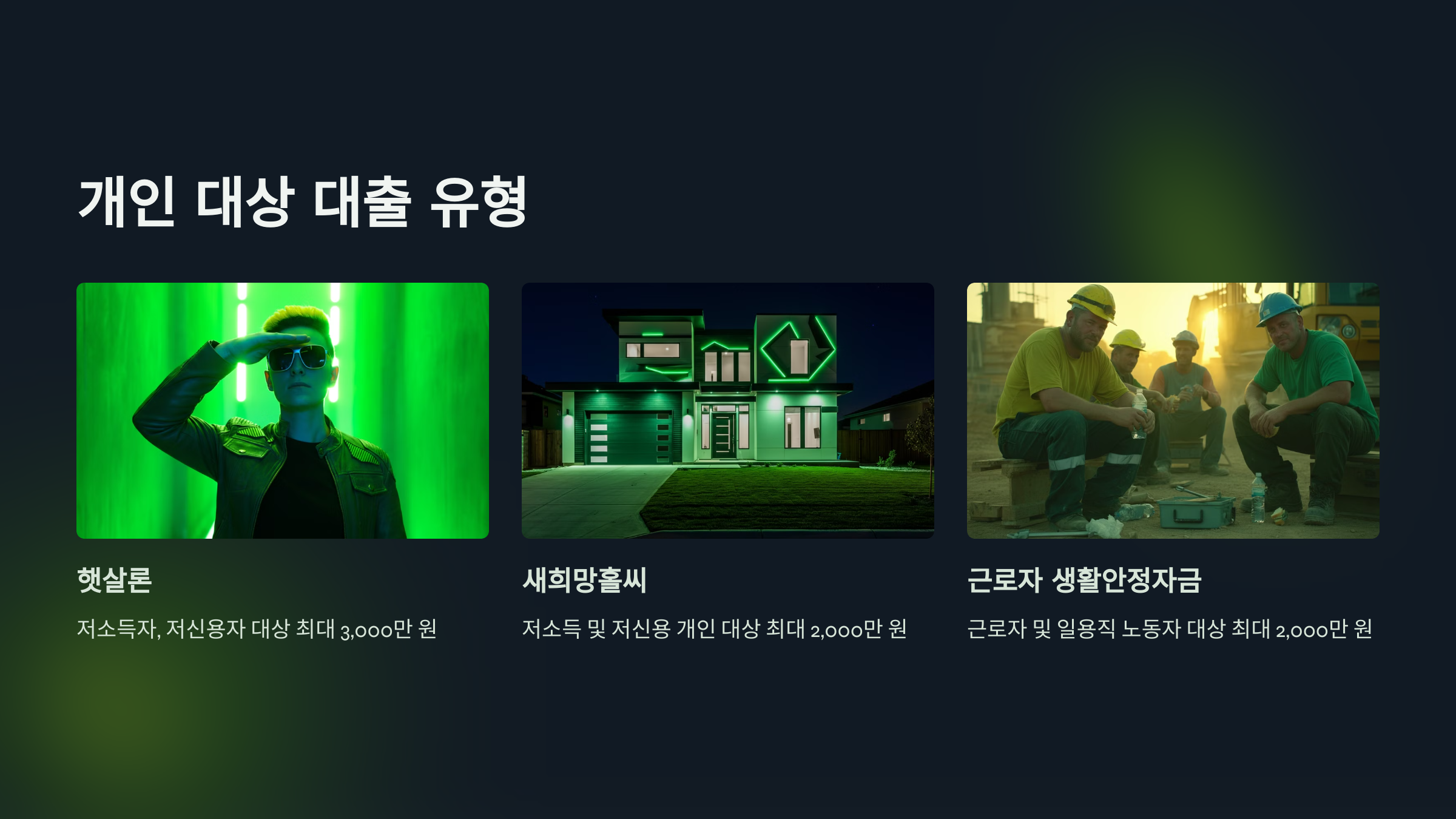 정부지원대출은 개인, 소상공인, 청년 등을 위한 다양한 유형으로 나뉩니다.